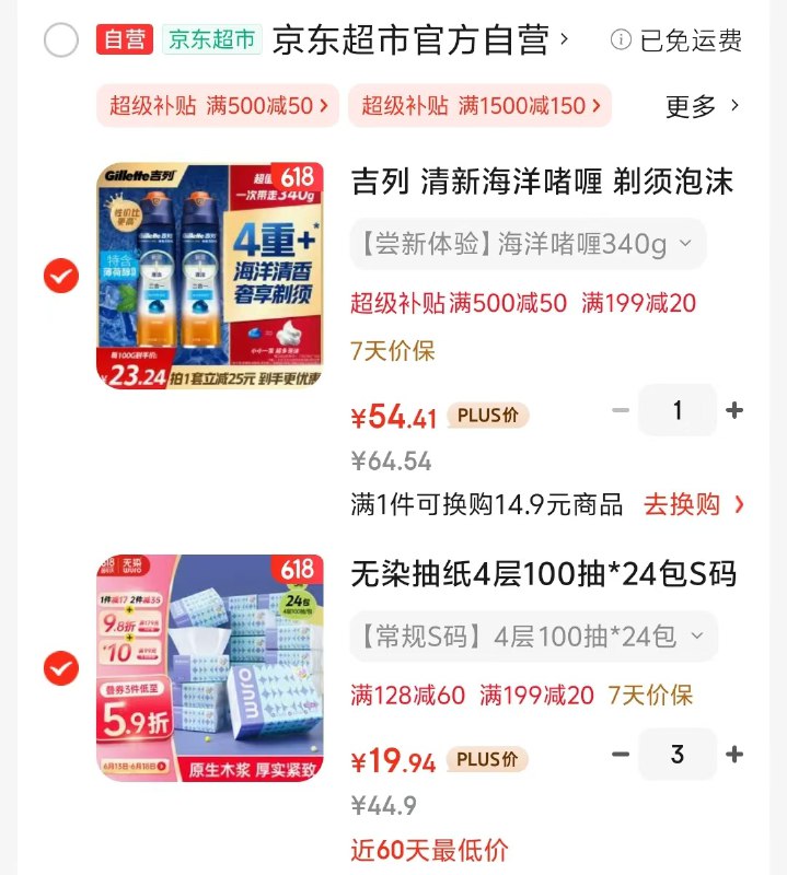 先加购,晚8到手29.9元,自营包邮