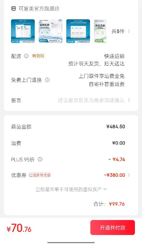 Plus各拍1件70.76元;到手11片