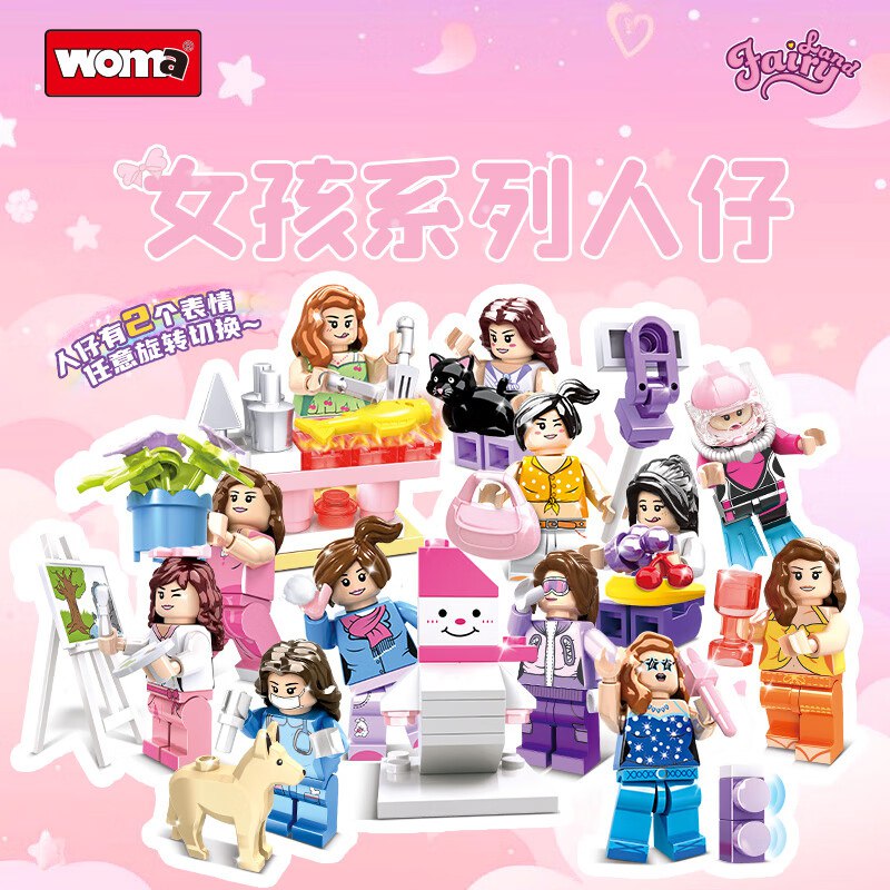 WOMA女孩人仔12款场景积木聚会分享玩具