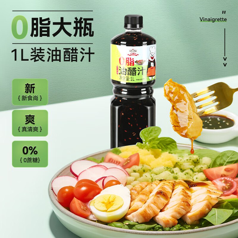 🎒 吉得利 0脂肪油醋汁1000ml,加购1件并且勾选 4.9亓 砸券更低