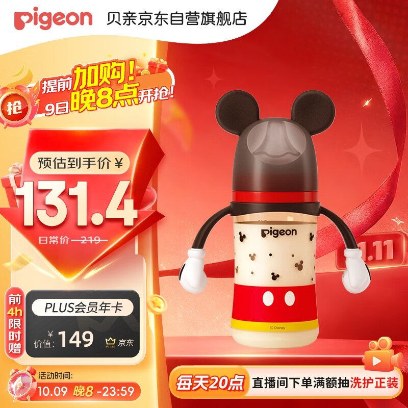 贝亲(Pigeon)PPSU迪士尼双把手奶瓶240ml 米奇