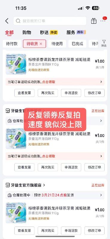 🚦 1r薅龙井绿茶牙膏1支手慢无