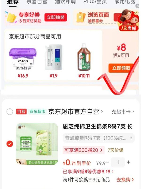 也可以领一张8无门槛券