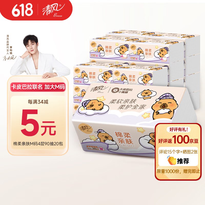 🎒 清风 抽纸 卡皮巴拉4层90抽×20包M码