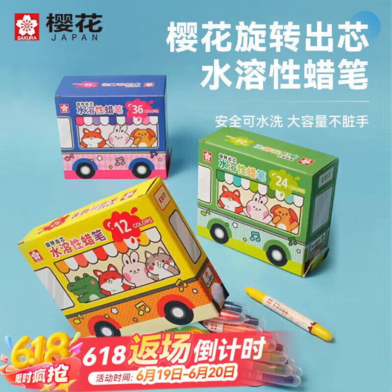 🎒 樱花(SAKURA)不脏手蜡笔24色套装