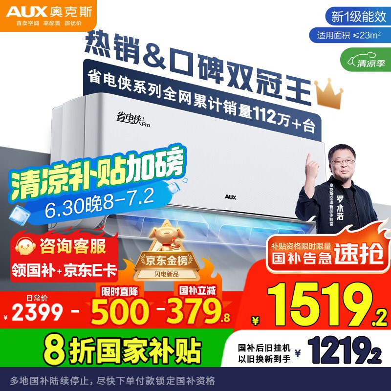 #小程序://支付有优惠/jHUEMOzCUPMv2yb🎒 奥克斯(AUX)大1.5匹 省电侠Pro 空调挂机