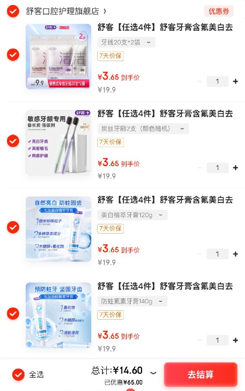 任选4件14.6元 ;才折3.6/件
