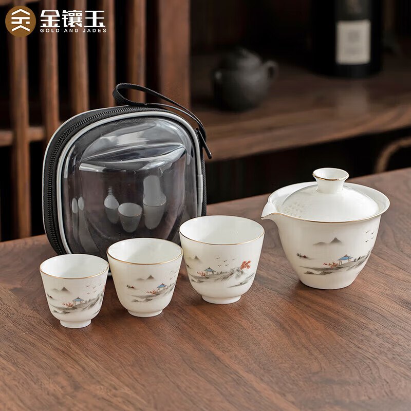 金镶玉 功夫旅行茶具便携式单人盖碗四件套装