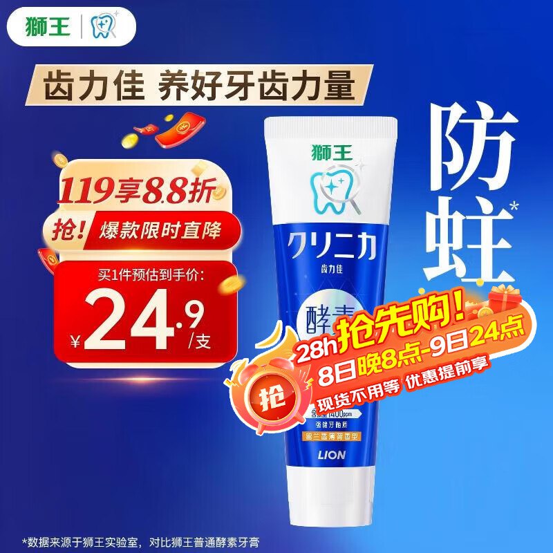 狮王 (Lion)齿力佳酵素专研防蛀高氟牙膏130g
