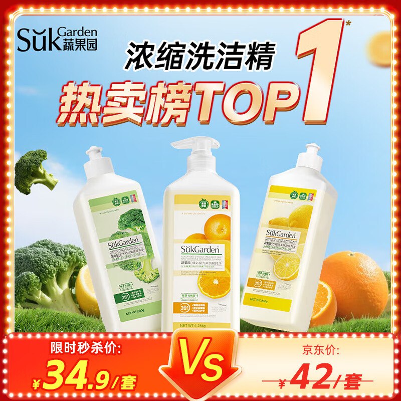 🎒 自营蔬果园 果蔬洗洁精3大瓶 共2.88kg