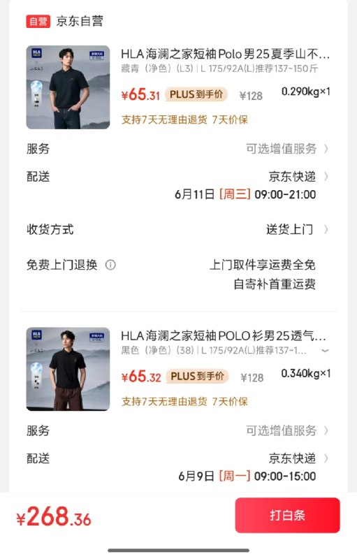 各拍1件选择白条付款,