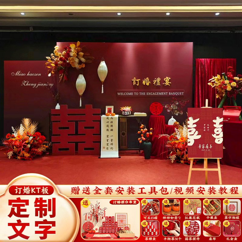 新中式订婚布置装饰摆件全套仪式感结婚宴拍照订婚kt板加高背景墙
