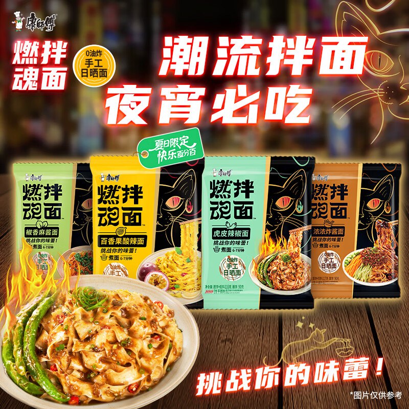 康师傅方便面 燃魂拌面 辣椒×3+炸酱×3+麻酱×2 113g×8袋,2首单,拍3件每件9.48