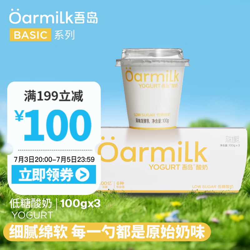 OarmiLk吾岛低糖酸奶0乳糖100gx3杯