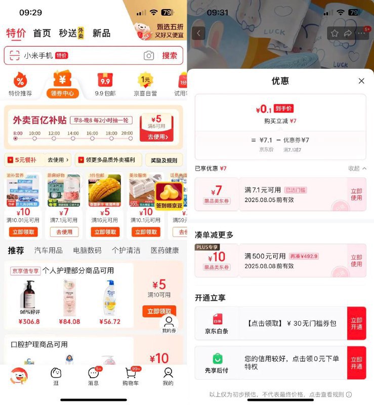 0撸垃圾袋,领券中心领7.01-7,签到随便领个红包